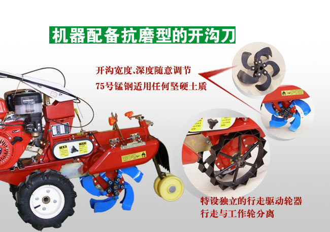 1、開(kāi)溝效果好:深度可達(dá)40厘米,寬度在8厘米至1.2米之間,將按您的寬度要求配置刀具。