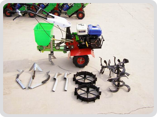 機(jī)器標(biāo)準(zhǔn)配置:一套旋耕機(jī)、一套播種施肥的作業(yè)輪、一個(gè)播種施肥耬、一個(gè)耘鋤